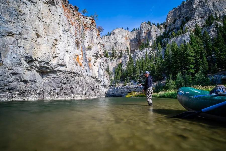 If the perfect fly fishing river for adventure were to be created, the Smith River would be the template. Small, secluded, and cutting through a scenic limestone canyon is Montana's Smith River. Legendary, iconic, bucket-list, best-ever, magnificent, etc, etc...hyperbole isn't wasted on a fishing trip on Montana's Smith River. For nearly 60-miles anglers can enjoy a river that is carefully managed by the state of Montana to ensure a high quality of experience. The river corridor is comprised of towering limestone cliffs and heavily timbered forests broken only by a few small clusters of cabins on private land. Because of the strict permit system, fishing pressure on the Smith is much lighter than on other major Montana rivers. Both Rainbows and Browns are present in good numbers, and fish over 20" are taken on virtually every trip. The Smith River is a special trip for the Do-It-Yourself angler and DIY floaters and anglers can apply for a launch through the Montana Fish Wildlife and Parks lottery system. As a licensed Smith River outfitter Montana Angler also has a select number of guided Smith River trips each year.