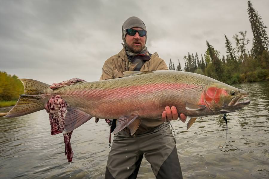 On day 5 we were back to the upper with Paul. Paul has spent his entire guiding career on the Sustut, upwards of 30 years I believe. He knows every rock and wave it has to offer so burning up river in a high power jet boat with him is a hell of a lot of fun to say the least. With the rain subsiding for the most part of the last few days the water was in top form to do a bit of sight fishing in certain areas. If you have never had the pleasure of spotting 20+ pound fish and then site casting to it then you need to add it to your bucket list. On multiple occasions the Sustut has allowed me to do this and whether the fish just turns on the fly, chases, or eats it is a very cool experience to watch such a large fish reacting to the offering.