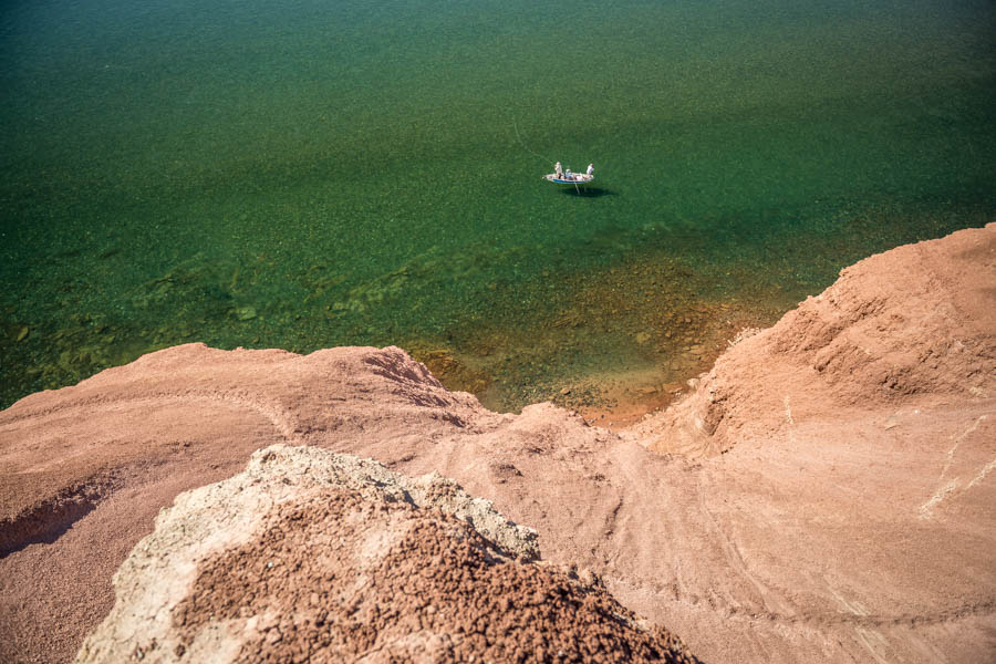 On day three the entire team embarked on a 3 day river camping trip to the Limay River. We were fishing the remote Limay Medio section (or “Middle” Limay). The Limay is a massive tailwater with big flows and big fish. Imagine the Missouri River on steroids. The Limay collects all of the waters coming off of the Andes including the Alumine, Chimehuine, Malleo, Collon Cura, just as the Missouri collects the waters of legendary rivers such as the Madison, Jefferson, Beaverhead, Bighole, and Gallatin at home in Montana. The landscape is vast and spectacular with arid semi dessert vegetation and large red rock cliffs towering along the river.