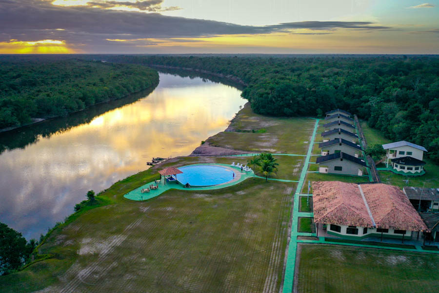 The icing on the cake on a trip to this remote region in the Amazon is the spectacular intact rainforest ecosystem that you are immersed in. The lodge is in the heart of the vast Amazon wilderness. Upon leaving the gateway city of Manaus on a Cessna Caravan – you spend nearly 2 hours flying over the vast and remote wilderness below. To be in a place this wild is humbling. There are no people to leave garbage, no planes in the air to generate noise, no roads for hundreds of miles. There is nothing but a vast and intense expanse of life. The sounds of the jungle are filled with the rumbling roars of howler monkeys, the squawking of macaws, the splashing of hunting otters and bass and the ever present cacophony of singing frogs and chirping insects. Jaguar prints are found on the white sand beaches, sloths and a variety of monkey species climb in the trees, dolphins patrol the river, caiman wait patiently on the beaches and birds of every shape, size and color are found nearly everywhere.